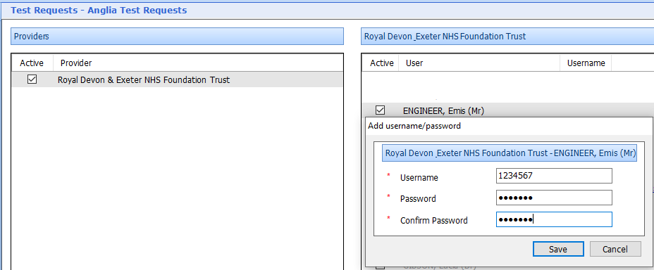 Activate Anglia Test Requests in EMAS Manager and add Provider Details